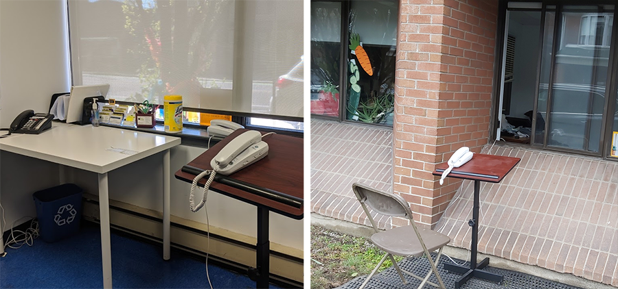 After the pandemic started, the first thing that we got [to support communication at the Advocacy office] was donated, a kind of a walkie-talkie. But it was hard to communicate—you have to push a button, there’s a lag, and then you miss the first part of the next sentence. It also didn’t guarantee privacy. The community member is outside the window and we’re talking through an Intercom, which potentially means we’re talking about private issues and passersby can hear.